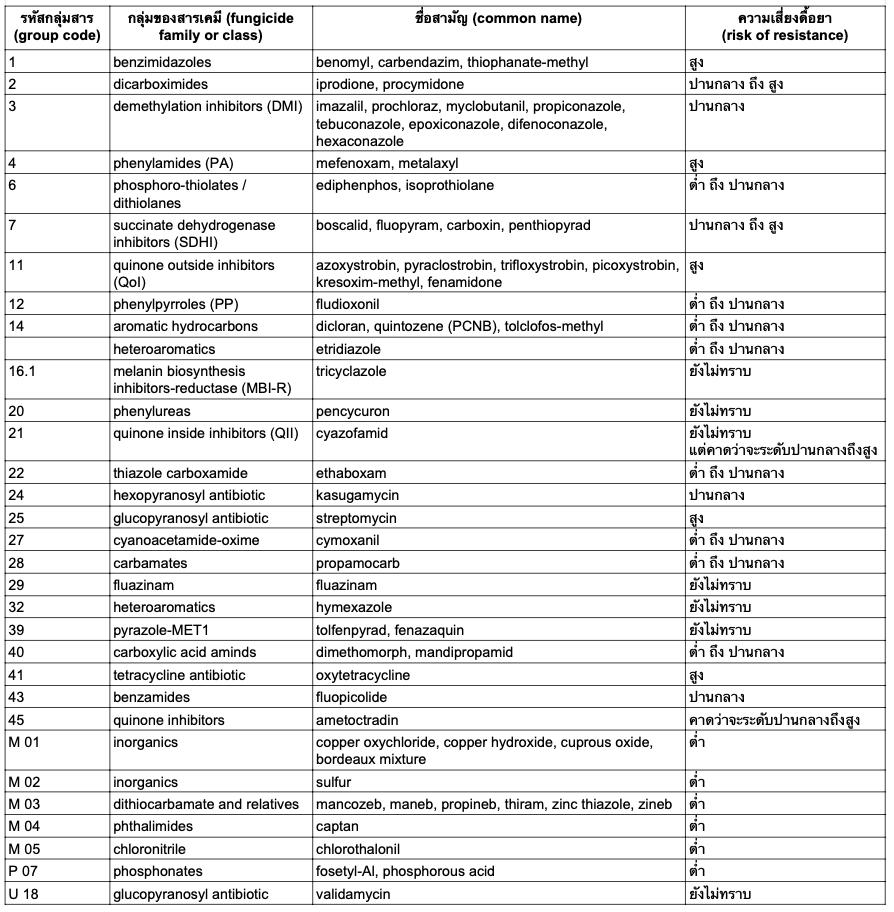 กลุ่มของสารป้องกันกำจัดโรคพืช (Fungicide Class)